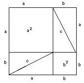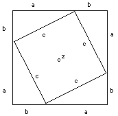 Si quitamos los cuatro triángulos en ambas figuras, nos queda que c2 = a2 + b2, donde c es la hipotenusa y a y b, los catetos.